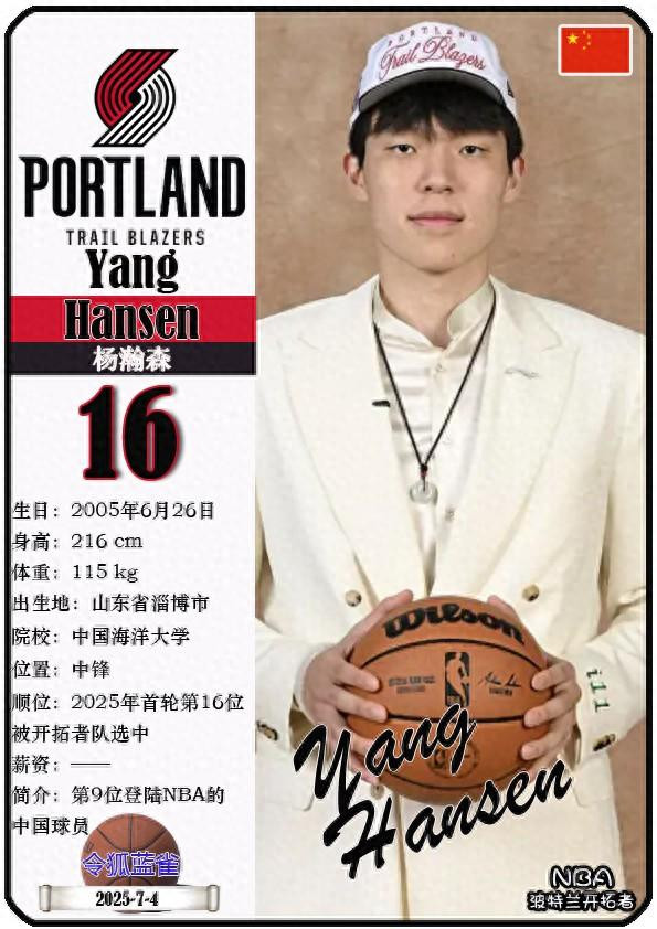 北京时间2025年6月26日,2025年NBA选秀大会,杨瀚森被波特兰开拓者队以首轮第16顺位选中,成为第9位登陆NBA的中国球员。本期以球星卡的形式展示NBA历届的40名第16顺位球员(按选秀年倒序排列):