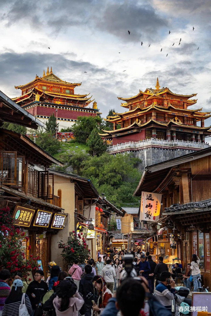 这里有松赞林寺,被誉为“小布达拉宫”,金顶在高原阳光下熠熠生辉;