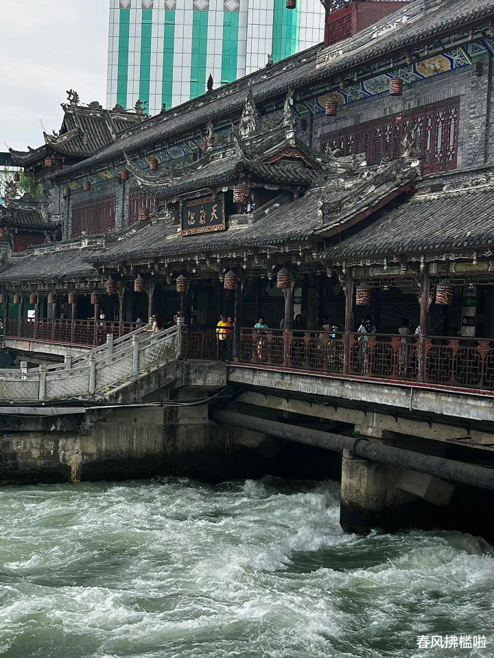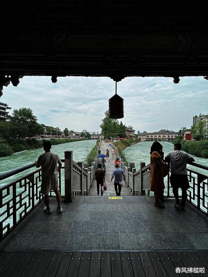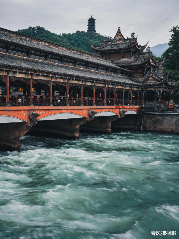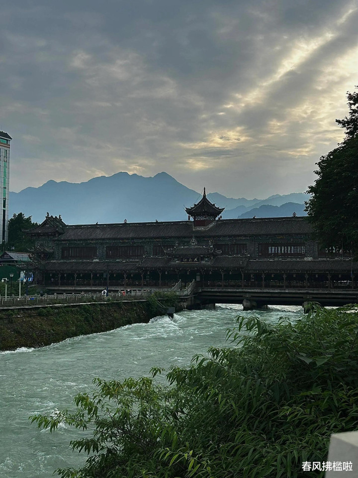 古城内南桥夜景灯火璀璨,岷江水奔腾而过,更显气势磅礴。