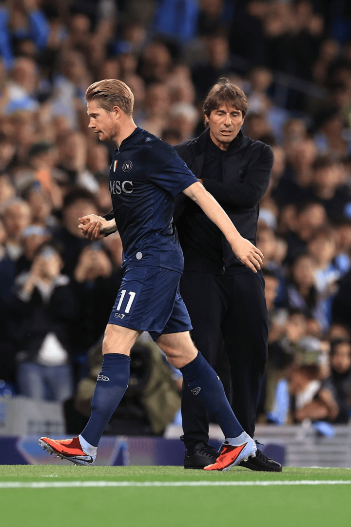 谈到在红牌之后换下德布劳内的决定时,孔蒂表示:“那是我唯一能做的选择。我为他感到非常抱歉,因为这是对他老东家的比赛,但凯文理解得非常清楚。我只有这一个决定,只能这样做。”