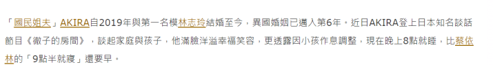 AKIRA婚后几乎不需要做家务活,全部由志玲姐姐承担,这一点跟韩国明星相似。
