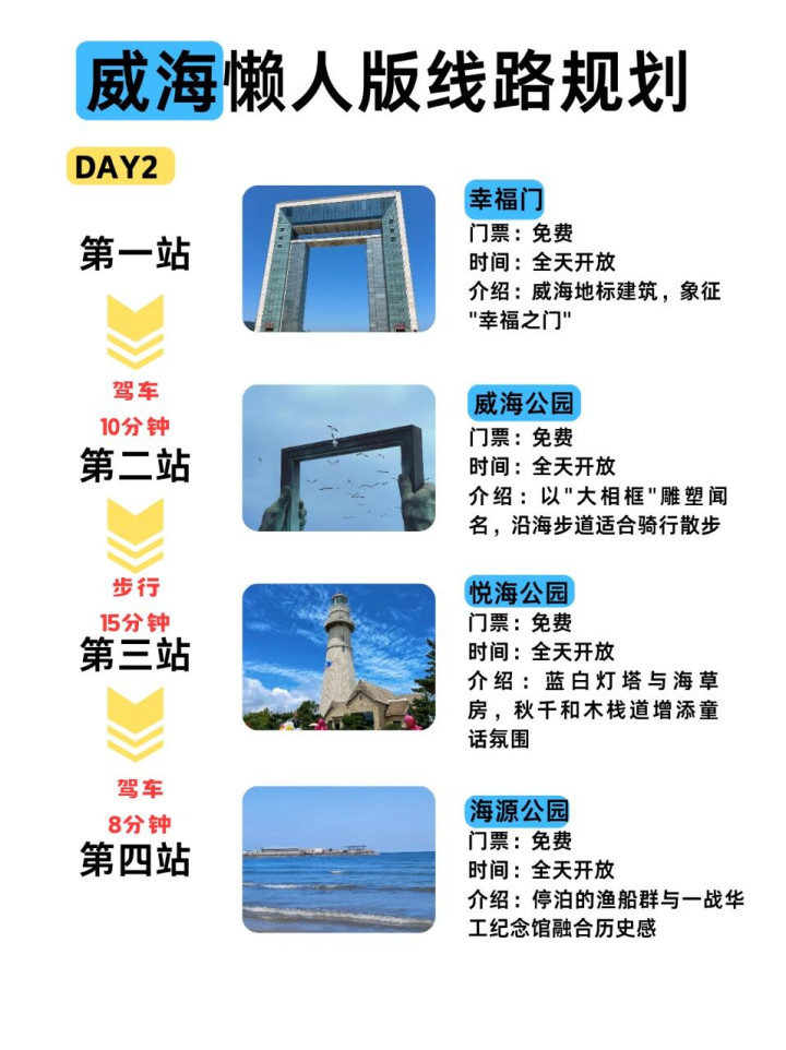 3️⃣在威海逛景点推荐打车 ,或者租电动车沿海骑行【大概五十元一天,可以坐两个人】,但是海边坡比较多,一定带好头盔,注意安全。很多电动车店可以换电或者异地还车,所以不用担心续航问题,需要提前问好店家。