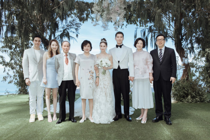 何猷君迎娶超模奚梦瑶,两人育有一子一女。
