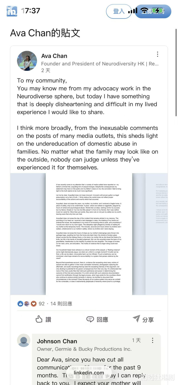 李明慧的女儿Ava就在发文中揭露了过去一直如履薄冰,她长期受到言语和精神虐待,在这样的环境下,她感到很是害怕和伤害极大。