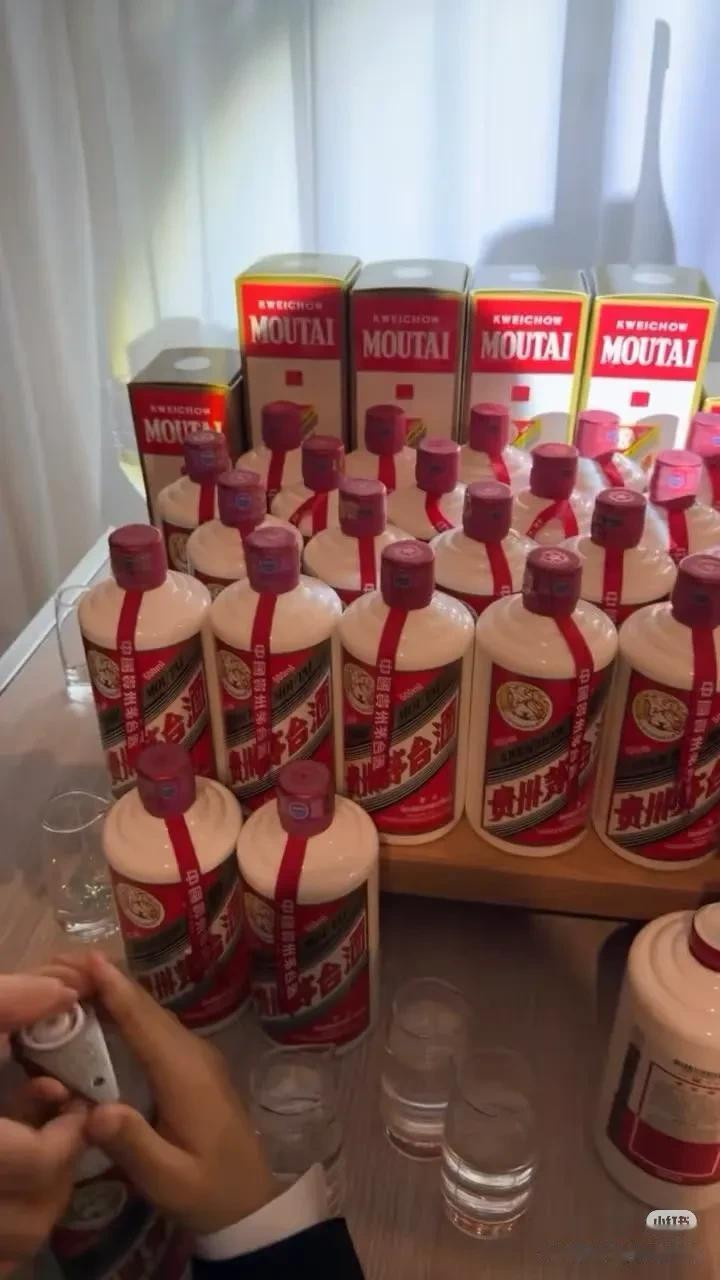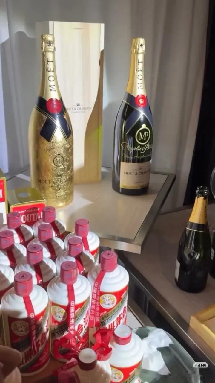 这张图有10几瓶茅台,还有香槟,红酒等。