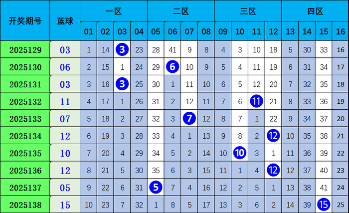 蓝球分析:上期蓝球开出15,为大奇数号码;近10期大小比为5:5,大小码出号均衡,近10期奇偶比为6:4,奇数号码出号较热;本期预计开出小奇数号码03。